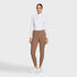 Den ultra-høje talje med en V-udskæring på bagsiden giver en elegant silhuet, mens det firevejs strækbare stof tillader fuld bevægelsesfrihed. Bukserne er lavet af åndbart stof, som er UV-beskyttet og modstandsdygtigt over for falmning, hvilket gør dem ideelle til lange dage i sadlen.