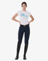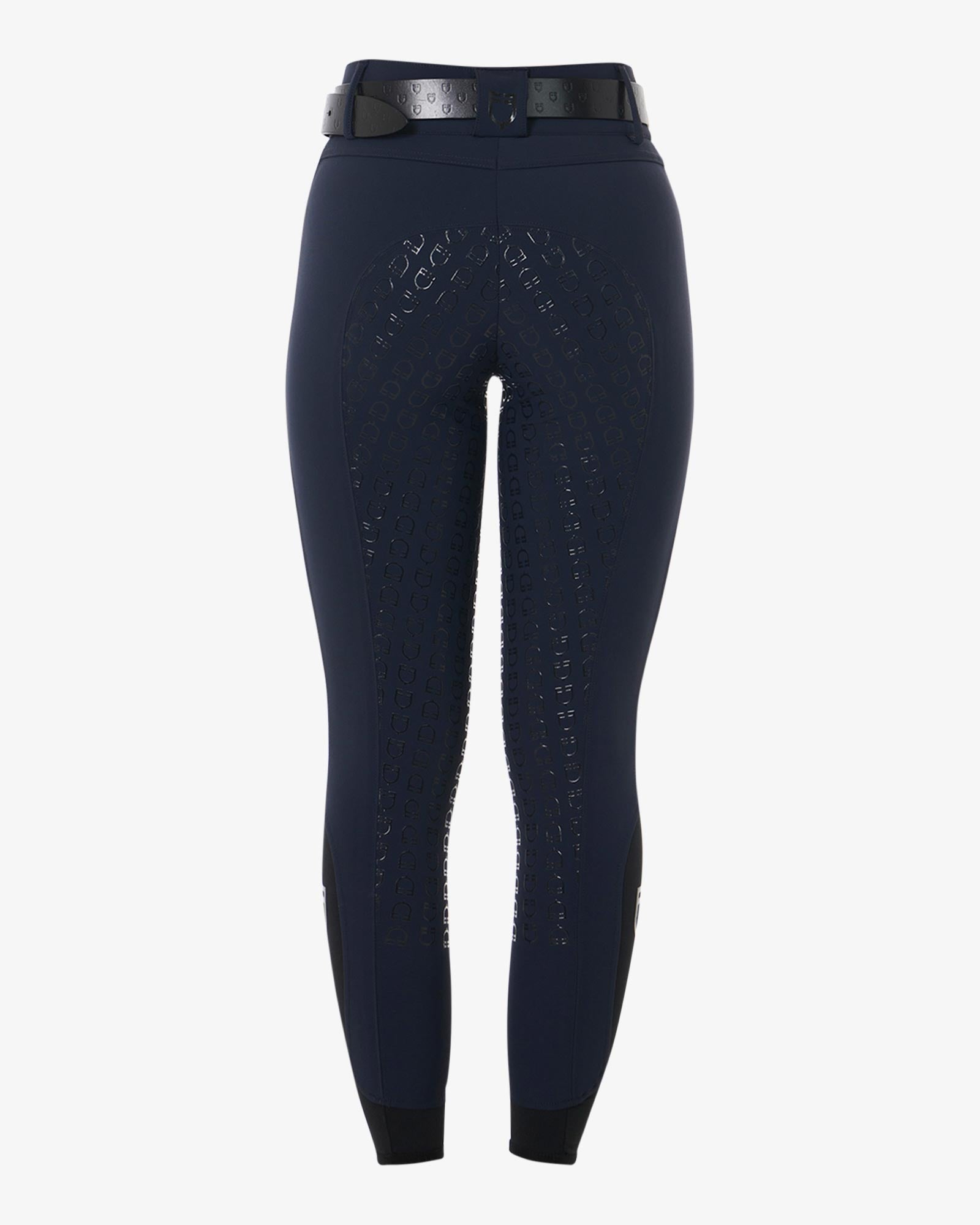 Højtaljede slim fit ridebukser til kvinder i åndbart elastisk teknisk stof. Fuldt silikonegreb med Equestro-logo.