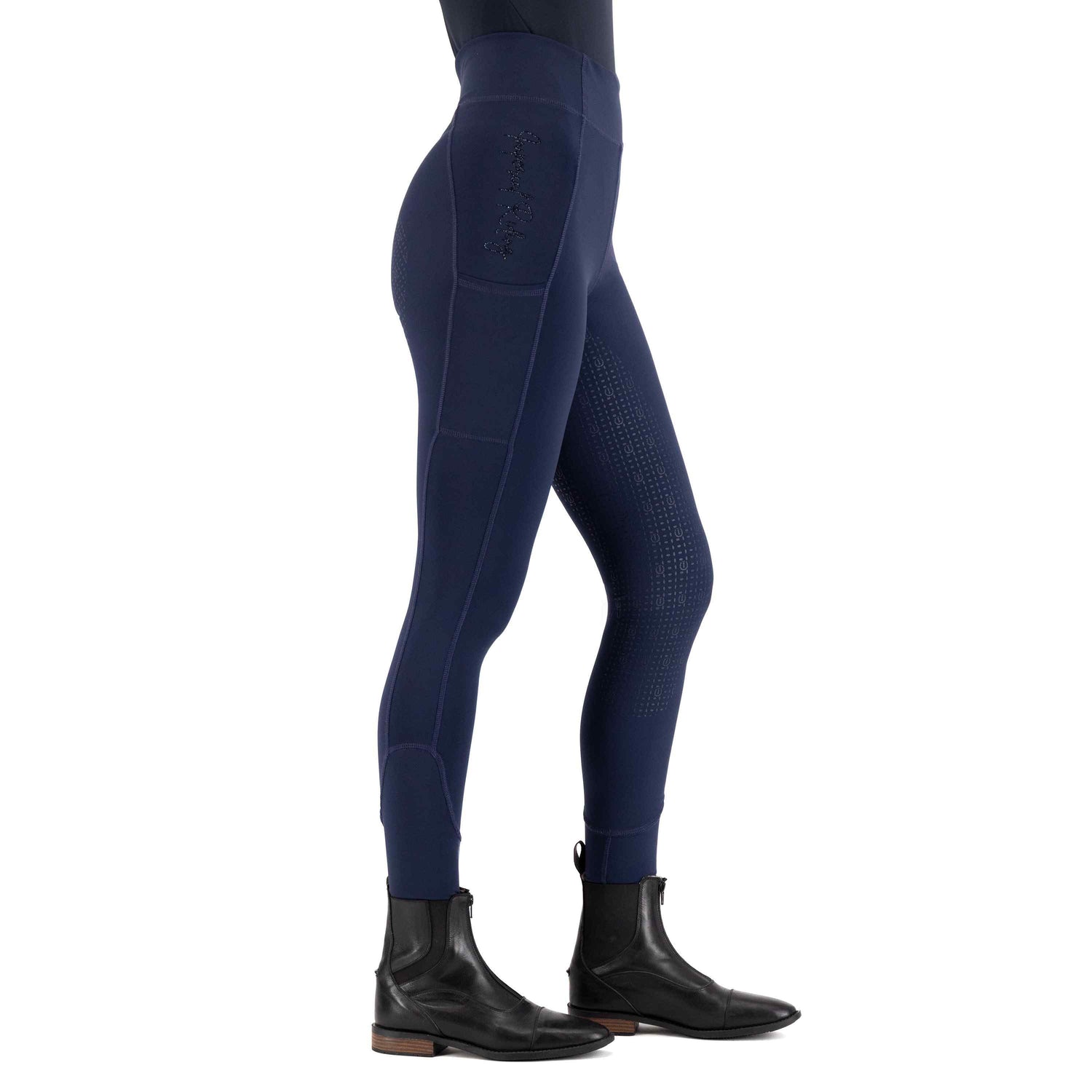 Leggings med høj talje. 2 telefonlommer. IMPERIAL RIDING rhinstens mønster på sidepanel under højre linning. IMPERIAL RIDING print på linningen. Silikone grib.