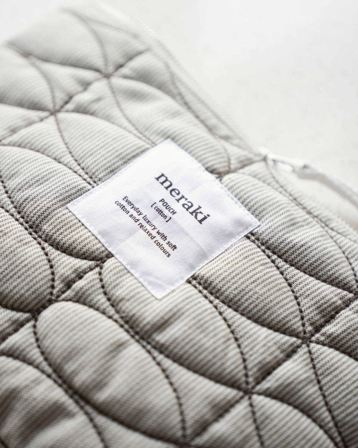 Skal du i byen eller vil du gerne rejse let? Denne lille makeup pung fra Meraki har plads til de vigtigste produkter i ét rum. Det quiltede bomuld med dekorative syninger i grønne nuancer giver Mentha et casual design, som du sagtens kan have stående på hylden som del af indretningen. Brug den alene eller sammen med en toilettaske for at holde styr på makeup, hudplejeprodukter og tilbehør derhjemme eller når du skal ud at rejse.