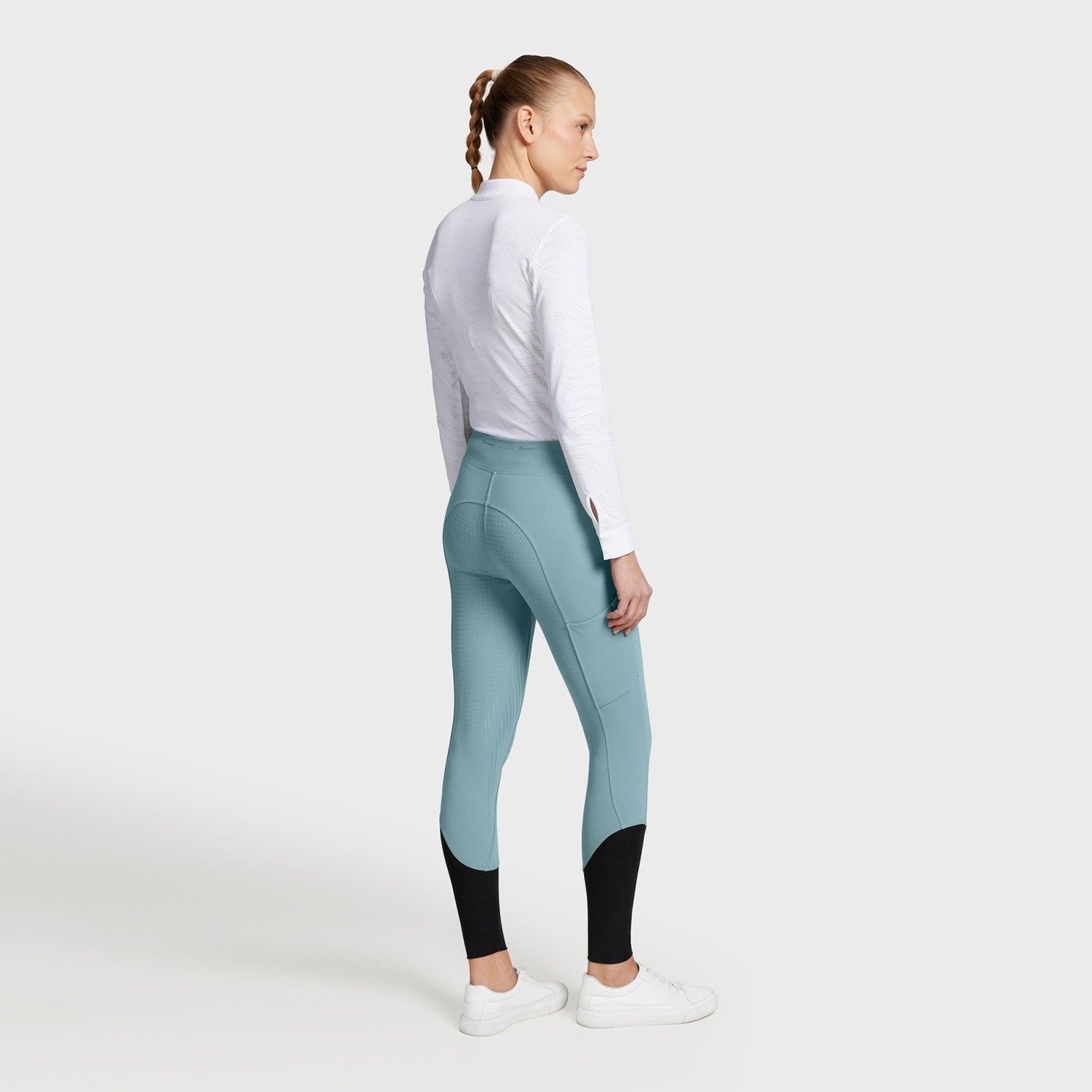 Dette er en tights med en bred krydset talje med god elastik, hvilket gør, at de sidder utroligt godt. Disse tights er lavet i 4-vejs stræk, hvilket giver en fantastisk pasform, da de former sig efter kroppen. De er lavet i åndbart materiale og har FullGrip, hvilket giver god stabilitet i sadlen. Samshield-logoet er smukt dekoreret med Swarovski-krystaller langs det ene ben.