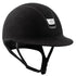 Fantastisk ridehjelm af Premium kvalitet i elegant sort med hagerem. Ydersiden af hjelmen er lavet af sort Alcantara, som er imiteret ruskind, og trimmen langs siderne er i flot mat sort Balzon. Logoet foran er i skinnende sort krom. Samt toppen af hjelmen er også sort Alcantara. Miss Shield hjelmens skygge er dekoreret med et frontbånd, på denne hjelm er det i sort Alcantara.