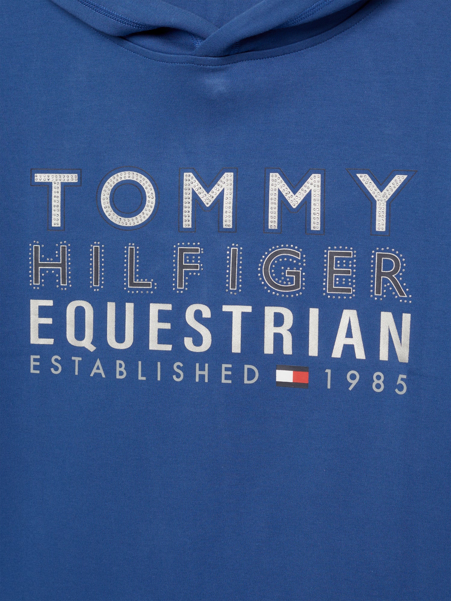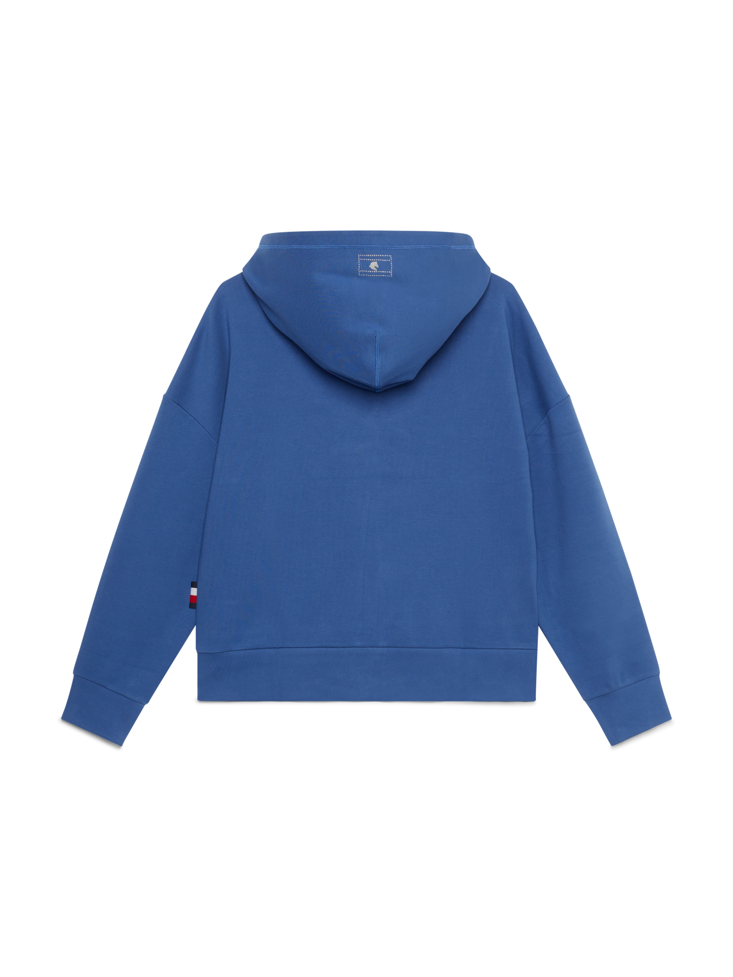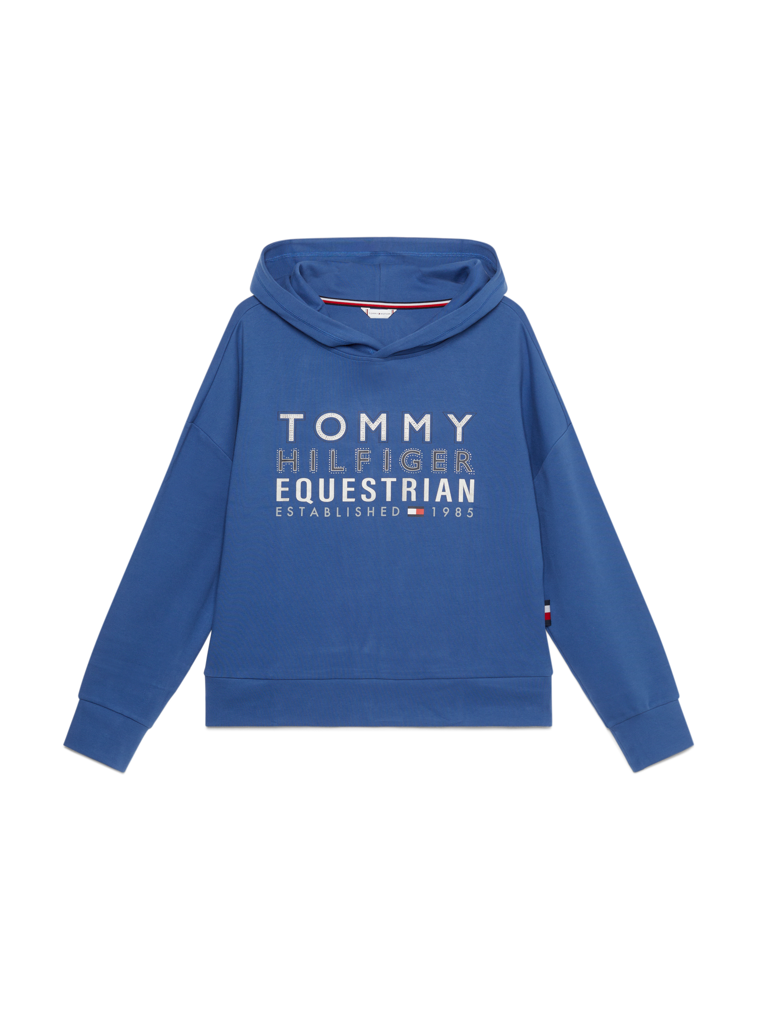 Frisk signatur oversized hoodie med moderne nittet Tommy Hilfiger logo på brystet. En smart metal tryklås holder hætten på plads under ridningen. Hætten er med nittet Tommy Hilfiger Eguestrian flag på..