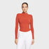 Samshield Alicia Turtle Neck i farven Cobber Coin er en stilfuld og teknisk rullekravebluse, der er designet til at give kvinder både elegance og komfort under ridning. Fremstillet af et åndbart og fugttransporterende materiale, sørger denne bluse for, at du forbliver tør og komfortabel, selv under krævende træningsforhold. Det lette stof sikrer en behagelig pasform og fremragende bevægelsesfrihed.