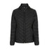 Elegant vatteret kort jakke med elastik i ærmerne. Mellemkraftig polstring, der gør den varm og blød. Voksfinish på stoffet gør det vandafvisende og vindtæt. Blanding af vandret og diagonal quiltning giver dybde til designet.