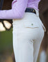 Ridebukser fra Joline er super flotte og lavet i stretch materiale, som er åndbart og giver optimal frihed. De har fuld grib af silikone med Jolines logo. Baglommerne er strategisk placeret for at undgå ridser på sadlen og er smukt dekoreret med flæser og en smuk guldknap.
