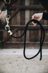 Blødt og rundt træktov fremstillet i nylon i en tæt fletning. Kan bruges i stalden, under transport og overalt hvor hesten har brug for at blive trøjret. 2 m langt med en nemt håndterbar pistolhage.