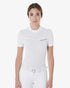 Lækker stævne-polo fra Equestro i slim fit, lavet i teknisk stof med meshstof. Stoffet er af super lækker kvalitet samt meget elastisk, åndbart og temperaturregulerende, hvilket giver en super komfort for rytteren. Det feminine snit gør, at denne t-shirt er figursyet, så den sidder smukt ind til kroppen. Poloen er udsmykket med Equestro-logoet på brystet langs sømmen - samt en slids bagpå, der sikrer et moderigtigt touch og funktionalitet.