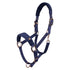 En smuk grime i velour på næse- og nakkestykke. Grimen er justerbar om næsen og har spæder på begge sider af nakken så den er nem at tilpasse din hest